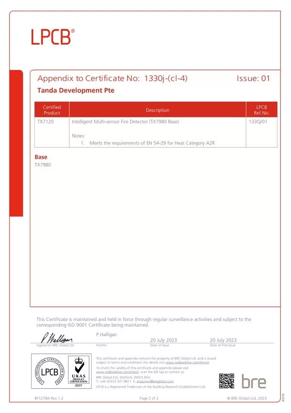 For TANDA Development Pte. Ltd, the attainment of LPCB certification for the TX7120 detectors is a testament to the company’s commitment to setting new benchmarks in fire safety. This achievement not only validates the company’s technical prowess but also reinforces its position as an industry leader, capable of delivering world-class fire alarm solutions.